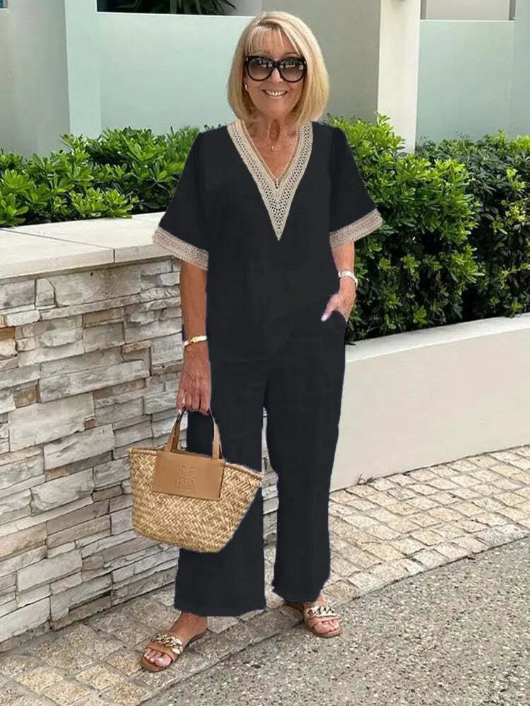 This Baggy Black V-Neck Two Piece Set offers a trendy and versatile option for any occasion. The set includes a loose-fitting v-neck top and matching bottoms, providing both comfort and style. Perfect for casual days or dressed up with accessories, this set is a must-have for any wardrobe.
