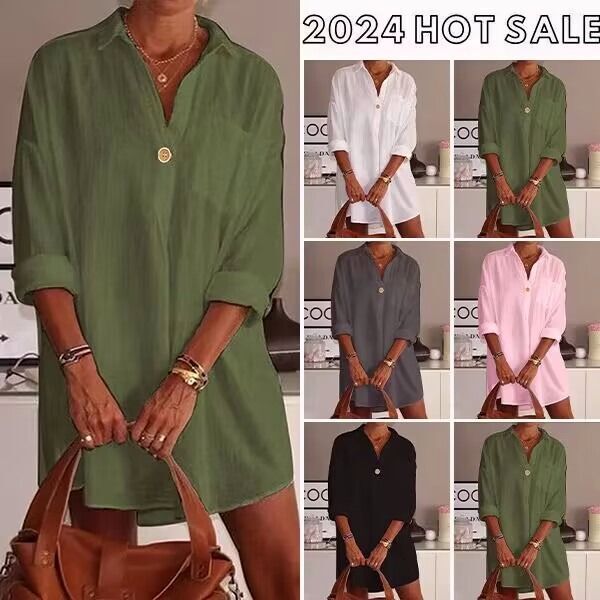 🎁2024 hot selling women's cotton and linen casual V-neck shirt 6-piece set $23.99