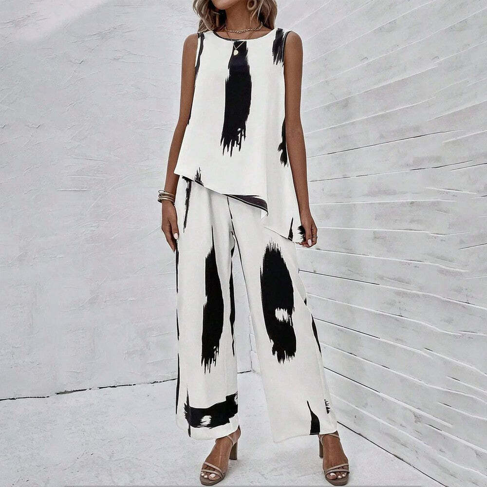 Stay stylish and cool this season with our Trendy Print Sleeveless Two Piece Set. Crafted with a trendy print and sleeveless design, you'll be sure to turn heads. Perfect for any occasion, our set offers both comfort and style. Elevate your wardrobe with this must-have piece.